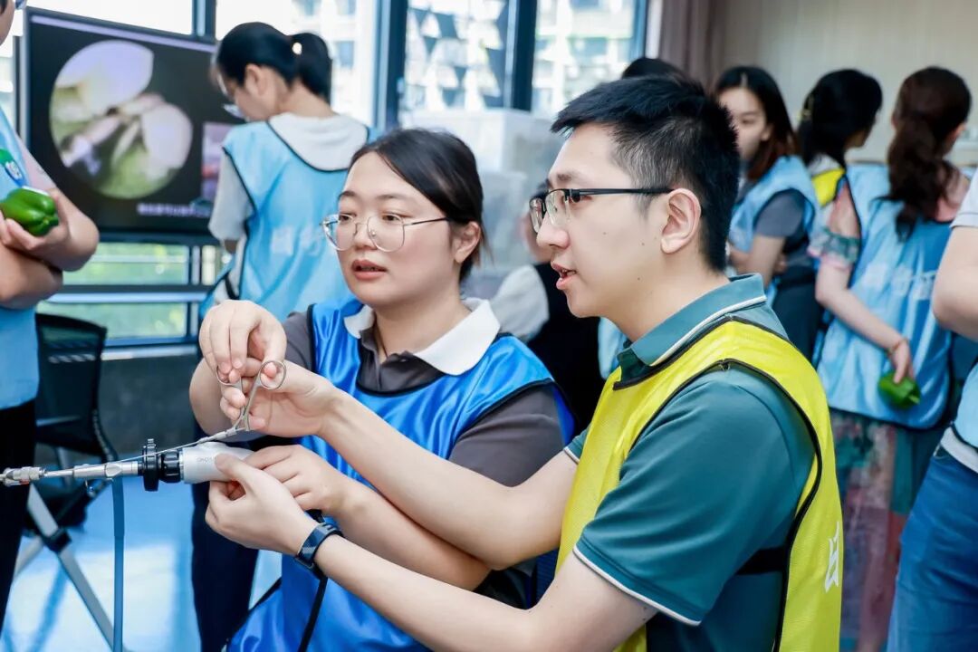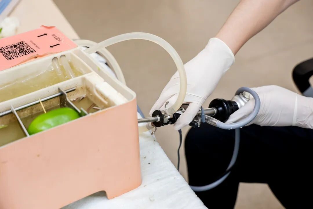 培训创新性地引入青椒、西柚、肉圆、鸡胸肉等日常物料作为模拟组织,开展宫腔镜具象化操作训练,高度还原宫腔内各类组织的真实切割手感。参培学员得以在高度仿真的情境中,沉浸式体验手术全流程之外的器械准备、团队协作与管理要点,显著增强了培训的临床贴合度与实践效能。此项创新有效弥补了传统宫腔镜技能培训中实操感知与综合流程教学的不足,具有重要的教学拓展价值。
